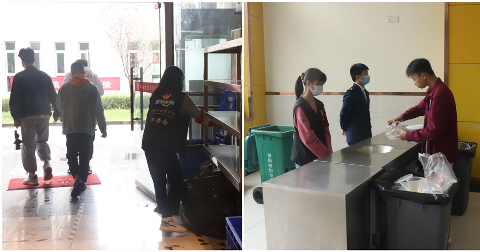 活动中,食堂区域的同学们严格按照食堂工作人员业务流程与工作要求,坚守各自岗位耐心等候每一位师生就餐结束,同时对食物浪费的现象进行文明劝导,充分秉承不怕苦、不怕累的劳动精神,为大家提供最贴心的服务,营造良好的就餐环境。宿舍区域的同学们在保洁阿姨的带领下清理宿舍垃圾,还原宿舍干净舒适的生活环境。